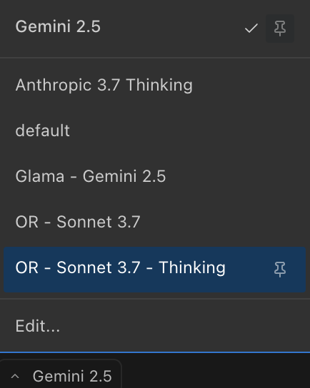• Model selections (o3-mini-high, Claude 3.7 Sonnet, DeepSeek R1, etc.)